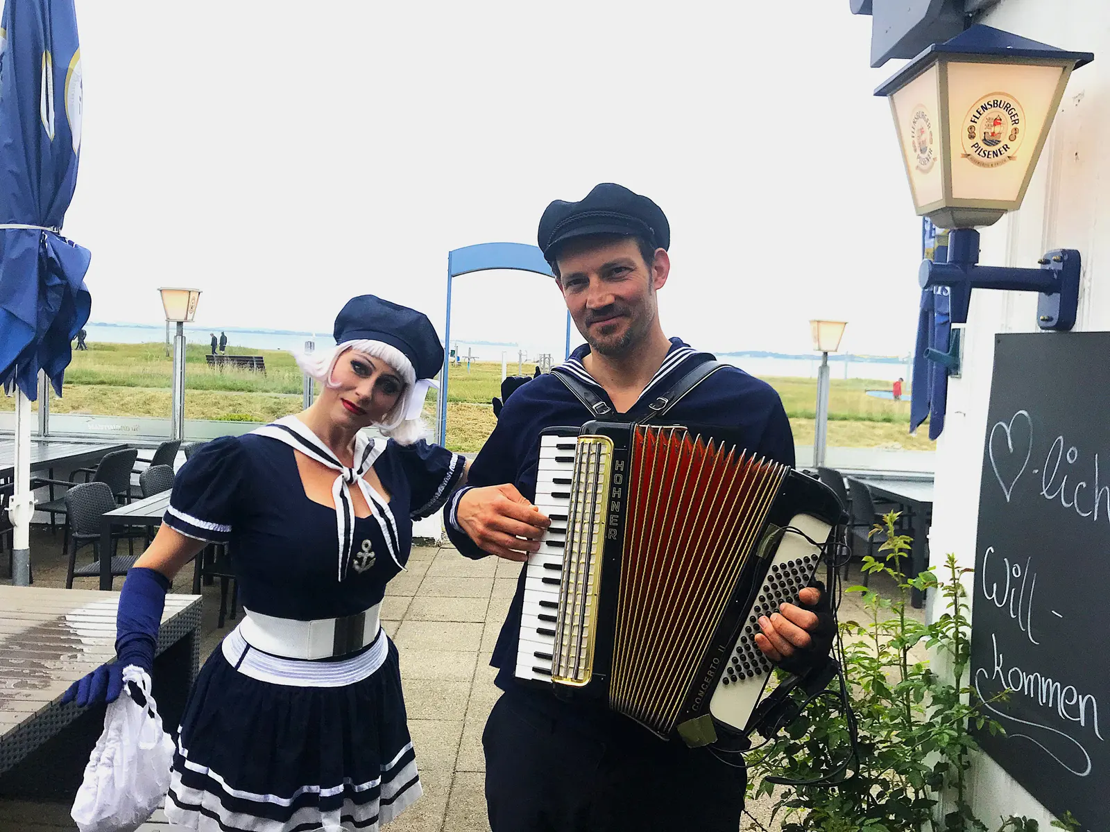 Das Künstlerduo bietet eine kurzweilige Seemannsliedershow in der Länge von 35-45 Minuten, bei der kein Auge trocken bleibt.