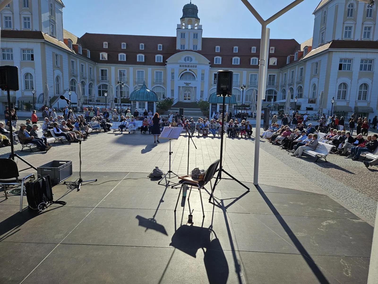 - Bei kleineren Räumen, ca. 20-120 Personen, kann die Technik mit Aktiv-Box und Mikrofon von der Künstlerin gestellt werden, falls ein DJ gebucht ist, arbeitet sie natürlich gerne mit diesem zusammen.