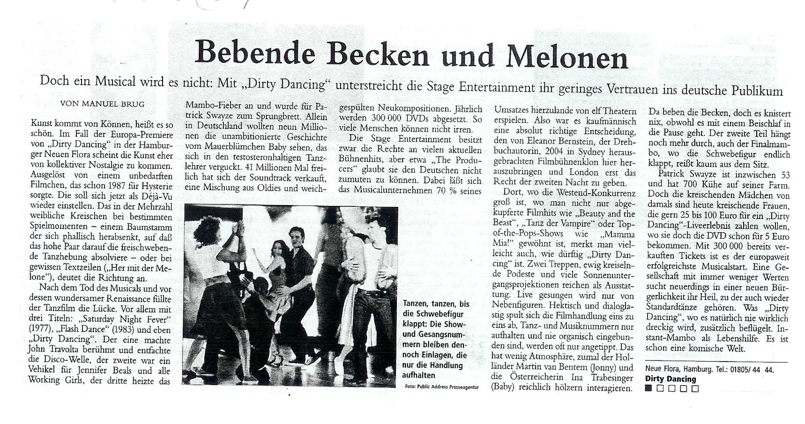 Musicalproduktion „Dirty Dancing“ in der Flora in Hamburg, Rolle: Ensemble, Zweitbesetzung für Vivian + Majorie