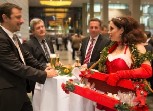 Sie ist nicht „auf den Mund gefallen“ und das erwartet sie auch von den Gästen! Eine reizvolle Dame wandert mit ihrem Bauchladen von Tisch zu Tisch und unterhält auf charmante Weise die Gäste.