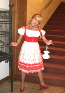 Nach Flair und Motto der Veranstaltung richtet sich auch das Erscheinungsbild des Living Dolls, sei es in Frack & Zylinder, im Dirndl, Matrosen-Outfit, Charleston-Outfit, 50er, 70er, Firmen-Outfit…..?