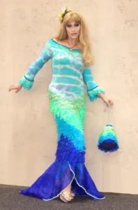 Anmutig und stumm, wie nicht von dieser Welt, wandelt ‚Undine‘, mit fließenden Bewegungen, wie von Wellen getragen, unter den Gästen und verschenkt ihre Muscheln.