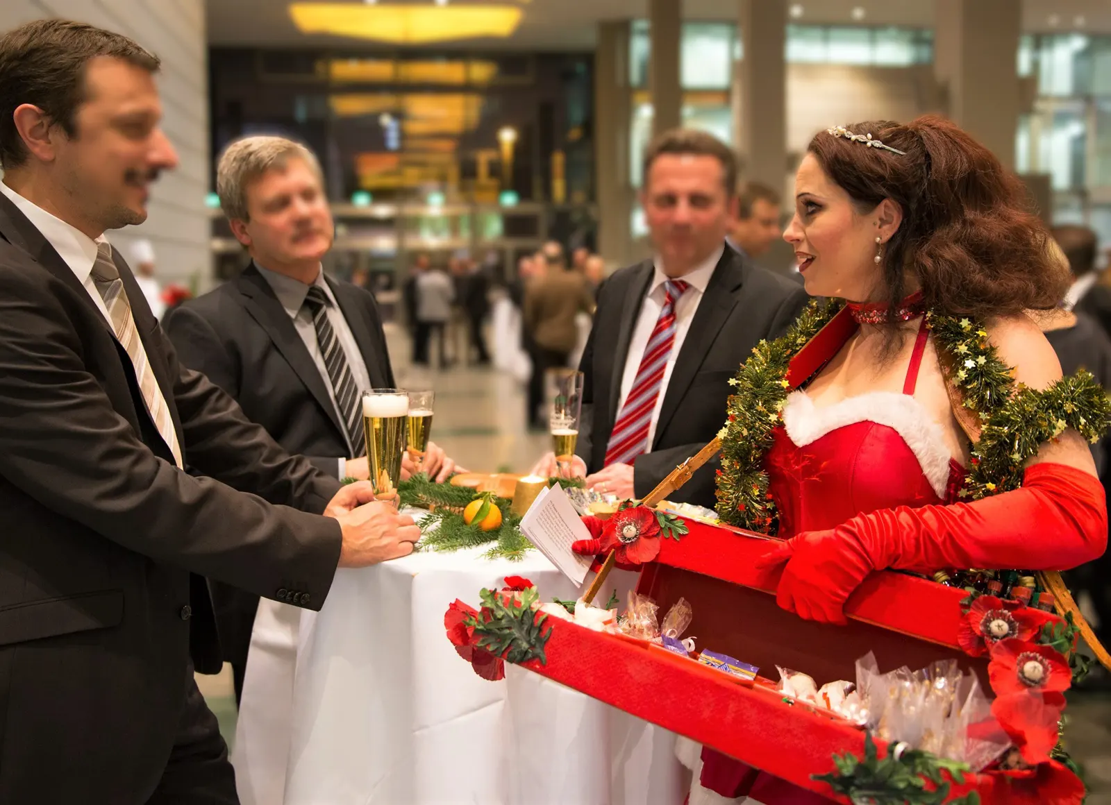 Sie ist nicht „auf den Mund gefallen“ und das erwartet sie auch von den Gästen! Eine reizvolle Dame wandert mit ihrem Bauchladen von Tisch zu Tisch und unterhält auf charmante Weise die Gäste.